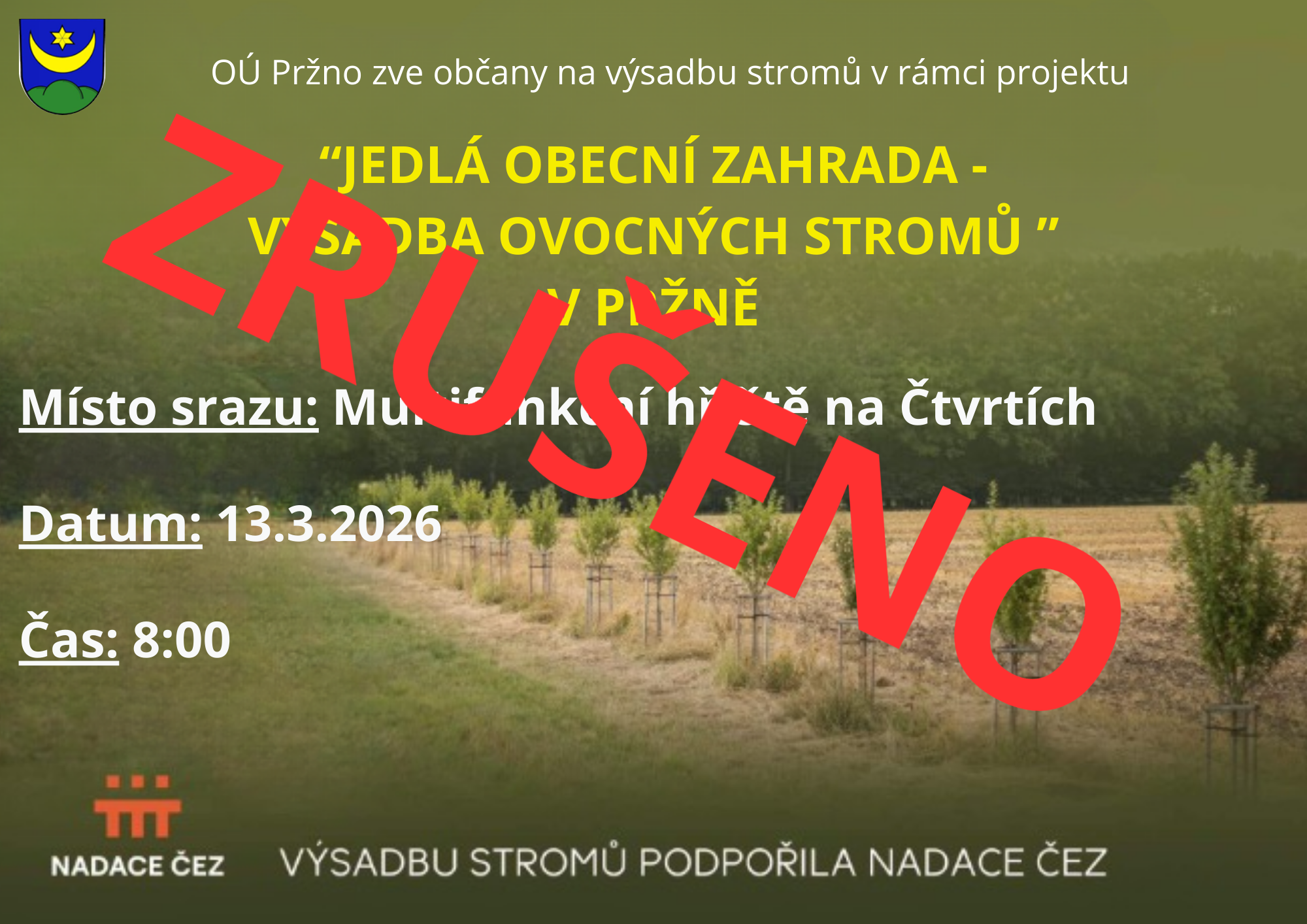 Informujeme občany, že dnešní výsadba ovocných stromků za Multifunkčním hřištěm na Čtvrtích se z technických důvodů ruší. O náhradním termínu budeme včas informovat.
